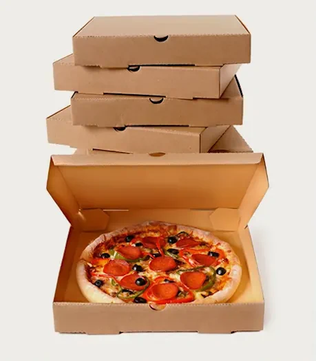 Sturdy and grease-resistant, these pizza boxes are designed for safe delivery and optimal heat retention, ensuring quality and convenience.
